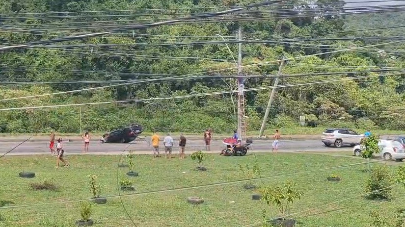 VÍDEO: Carro atinge poste e capota no Acesso Norte, em Juiz de Fora