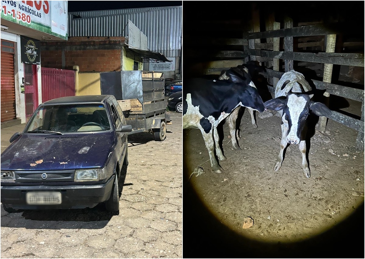 Caso aconteceu na zona rural de Ubá. Outros dois animais estavam amarrados em uma carretinha. Um homem de 54 anos e um adolescente de 16 foram detidos após serem flagrados com três bezerros amarrados e sedados em um Fiat Uno. Outros dois animais foram encontrados amarrados em uma carretinha acoplada ao veículo. O caso aconteceu em Ubá, na noite da quinta-feira (25). Conforme a Polícia Militar, os homens já são conhecidos do meio policial por furto de gado na região. O homem foi preso pelo crime de receptação e corrupção de menor, conforme a PM. Bezerros estavam sedados dentro de Fiat Uno, em Ubá — Foto: Polícia Militar/Divulgação Um homem de 54 anos e um adolescente de 16 foram detidos após serem flagrados com três bezerros amarrados e sedados em um Fiat Uno e com mais dois animais amarrados em uma carretinha acoplada ao veículo. O caso aconteceu na região conhecida como Ubeba, zona rural de Ubá, na noite da quinta-feira (25). Conforme a Polícia Militar, os homens são conhecidos do meio policial por furto de gado na região. Três dos bovinos teriam sido furtados em Piraúba, cidade de onde também é a dupla. O homem foi preso pelo crime de receptação e corrupção de menor, conforme a PM. ASSISTA TAMBÉM: Homem é preso em Juiz de Fora por suspeita de furto de tratores, gado e fios de alta tensão Homem é preso em Juiz de Forpor suspeita de furto de tratores, gado e fios de alta tensão VÍDEOS: veja tudo sobre a Zona da Mata e Campos das Vertentes Ops!