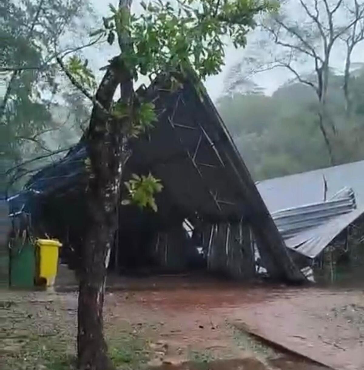 Segundo a Prefeitura de Pequeri, apesar do susto, ninguém ficou ferido. Atividades foram canceladas nesta quarta-feira (3) e ainda não há previsão de retomada. Um temporal atingiu a cidade de Pequeri, na Zona da Mata mineira, na tarde de terça-feira (2). A forte chuva veio acompanhada de descargas elétricas e intensa ventania. A cobertura da quadra esportiva da Escola Municipal Waldomiro de Magalhães Pinto desabou. As aulas foram suspensas nesta quarta-feira (3). Temporal derruba cobertura de quadra escolar e aulas são suspensas em Pequeri Um temporal atingiu a cidade de Pequeri, na Zona da Mata mineira, na tarde de terça-feira (2). A forte chuva veio acompanhada de descargas elétricas e intensa ventania, que causaram diversos estragos no município, como o desabamento da cobertura da quadra esportiva da Escola Municipal Waldomiro de Magalhães Pinto. Segundo a Prefeitura, apesar do susto, ninguém ficou ferido. Todos os alunos e funcionários foram retirados das instalações em segurança. Como medida preventiva, as aulas foram suspensas nesta quarta-feira (3) no colégio. A quadra continua isolada e, conforme o Executivo, ainda não há previsão para a retomada das atividades. A Secretaria de Obras já iniciou os reparos emergenciais. Chuva forte derruba cobertura da quadra da Escola Municipal Waldomiro de Magalhães Pinto em Pequeri — Foto: Kadu Fontana/Reprodução Além dos danos na escola, a ventania também derrubou um poste de iluminação pública na estrada que liga Pequeri ao Aeroporto Regional da Zona da Mata. Técnicos trabalham na recuperação da estrutura. A Prefeitura reforça que monitora outros pontos da cidade para identificar possíveis danos e garantir a segurança da população. Comunicado da Prefeitura de Pequeri — Foto: Prefeitura de Pequeri/Reprodução VÍDEOS: veja tudo sobre a Zona da Mata e Campos das Vertentes Ops!