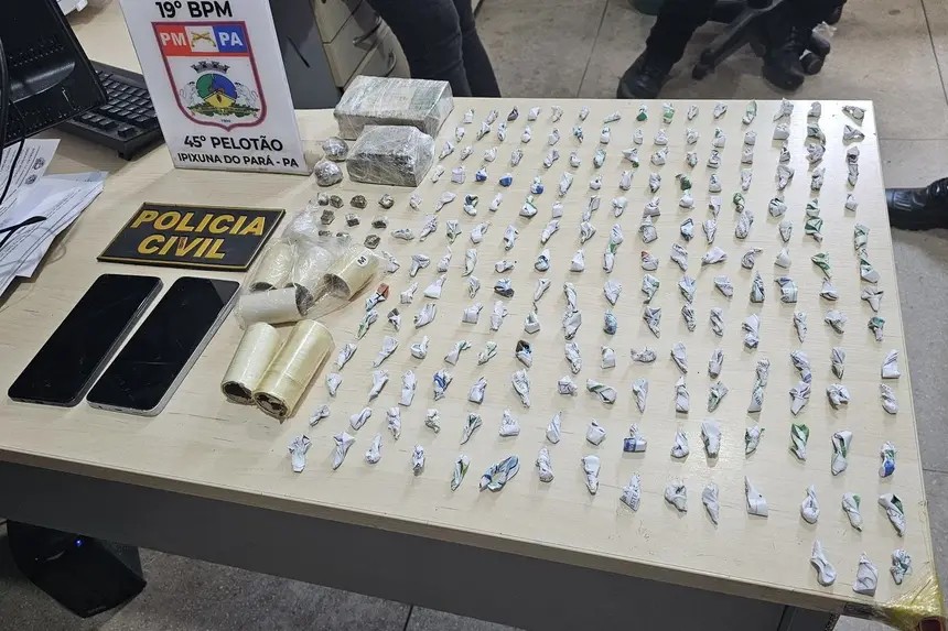 Quatro homens e duas mulheres foram presos em flagrante, incluindo atiradores. Investigações continuam para identificar e prender mais envolvidos em extorsões. Quatro homens e duas mulheres foram presos em flagrante durante a operação “Resposta Imediata”, deflagrada contra suspeitos de extorsão e de um ataque a tiros contra uma distribuidora de bebidas. Entre os presos na operação, a polícia identificou dois homens que teriam atirado contra o estabelecimento. Durante as prisões em flagrante também foram apreendidas armas de fogo, drogas, celulares e materiais usados para a preparação da droga. Operação prende seis pessoas em Ipixuna do Pará Suspeitos de tráfico de drogas, posse ilegal de arma de fogo e homicídio foram presos em Ipixuna do Pará, sudeste do estado. Eles foram detidos durante a operação “Resposta Imediata”, deflagrada contra suspeitos de um ataque a tiros contra uma distribuidora de bebidas. A Polícia Civil informou nesta quinta-feira (8) que quatro homens e duas mulheres foram presos em flagrante. Entre os presos na operação, a polícia identificou dois homens que teriam atirado contra o estabelecimento. Uma câmera flagrou o ataque contra a distribuidora de bebidas. Dois homens chegaram em uma motocicleta e atiraram várias vezes. A suspeita é que a ação criminosa seja em represália ao proprietário que teria se recusado a extorsão de pagamentos ilícitos aos suspeitos ligados à criminalidade. Durante as prisões em flagrante também foram apreendidas armas de fogo, drogas, celulares e materiais usados para a preparação da droga. Todos os detidos permanecem na delegacia de Ipixuna à disposição da Justiça. Ainda segundo a polícia, as investigações continuam para identificar e prender mais envolvidos em crimes de extorsões na região. Operaçao prendeu suspeitos e apreendeu drogas em Ipixuna do Pará — Foto: Polícia Civil/Reprodução VÍDEOS: veja todas as notícias do Pará Ops!