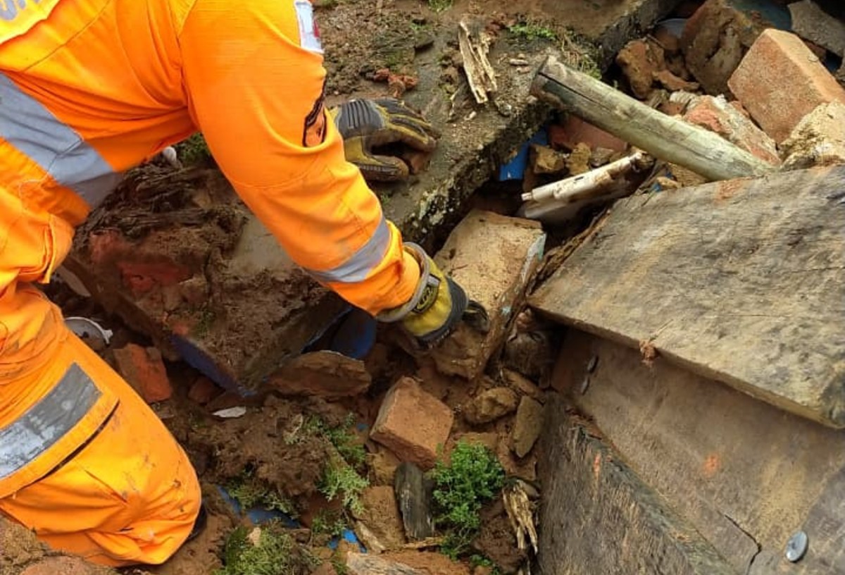 Lar Brasil Gato é socorrido nos escombros onde família morreu soterrada após deslizamento em MG; VÍDEO